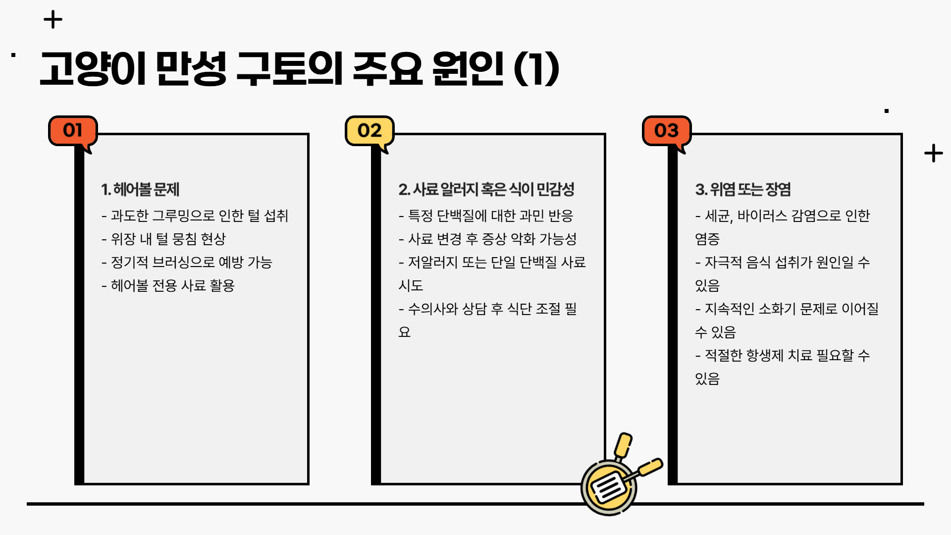 그건 단순한 헤어볼 문제가 아니라 고양이 만성 구토일 가능성이 높아요.