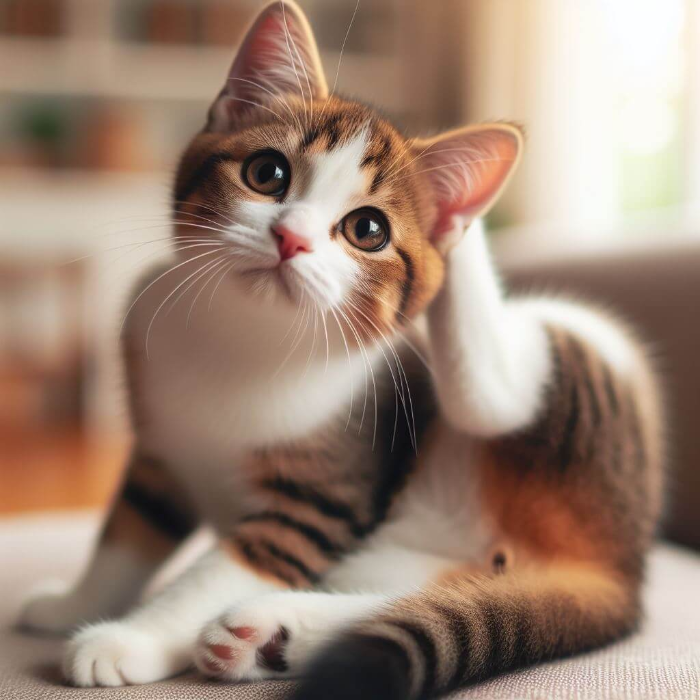 안녕하세요. 이제 막 데려온 고양이가 귀를 심하게 긁고 고개를 터는 증상을 보이나요?